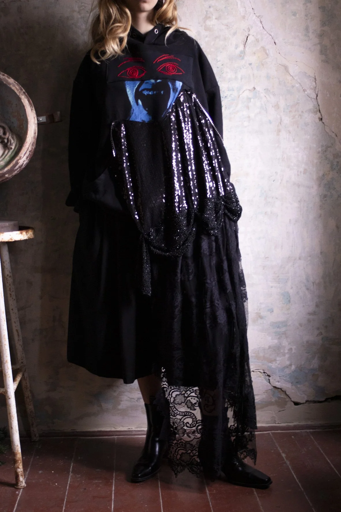 Fekete rakott nadrág gumis derékkal. Anyaga: gyapjú. Egyedi darab.