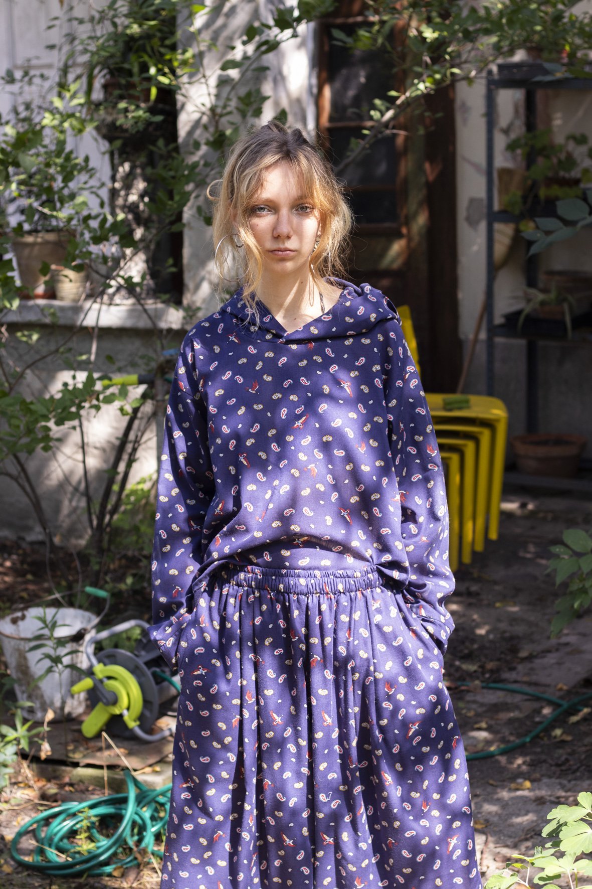 Trousers with elastic waistband and with duck print. Fabric is cotton. This is a unique piece.
