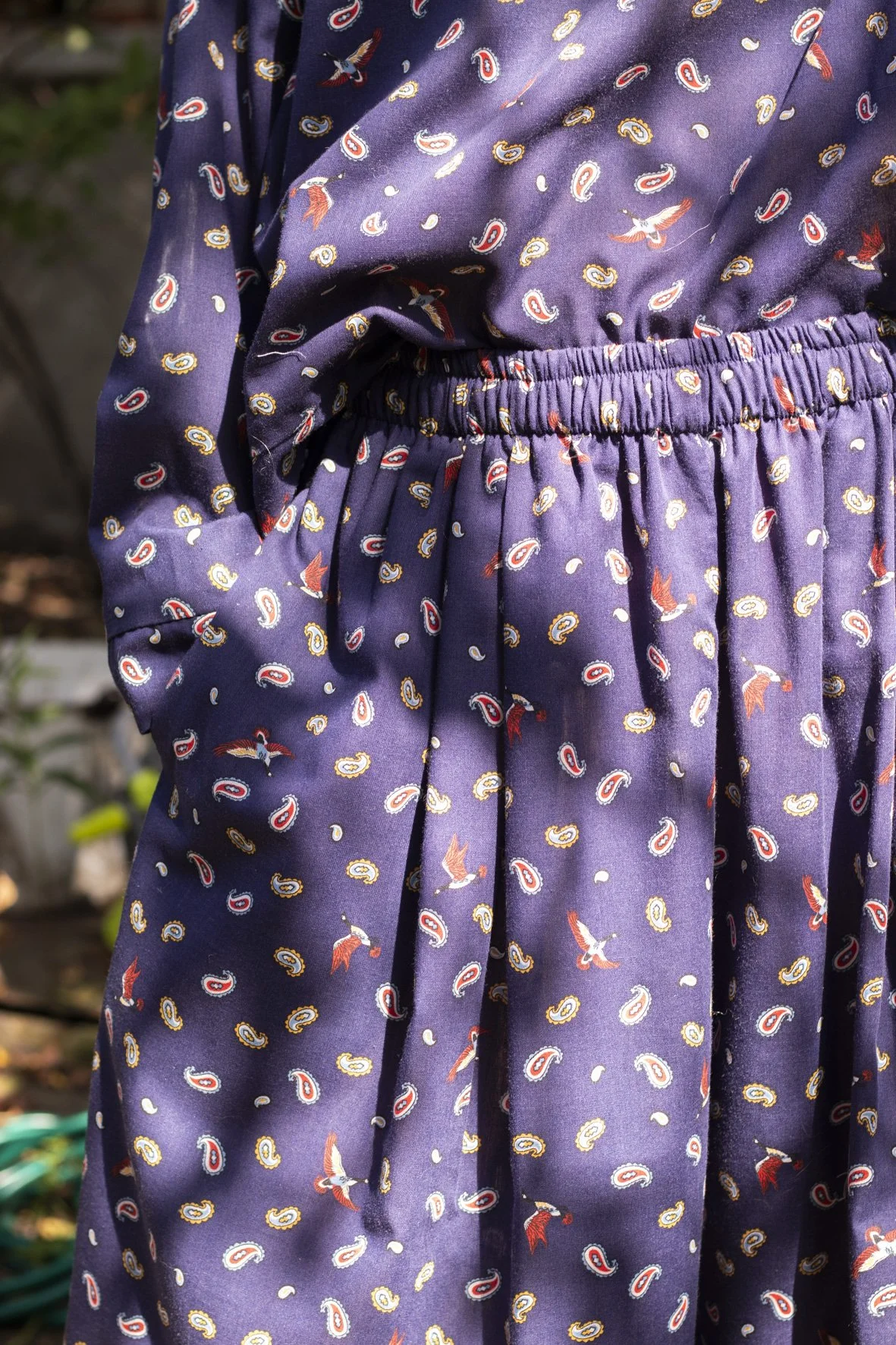 Gumis dereku, megkotos nadrág vadkacsa mintával. Anyaga pamut . Egyedi darab.